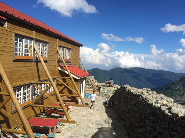 当初は槍ヶ岳山荘に泊まる予定だったけど、少し下の殺生ヒュッテに変更。これが大正解で、槍ヶ岳山荘はテン場も満員、韓国ツアーの登山者で小屋も騒がしかったらしい。