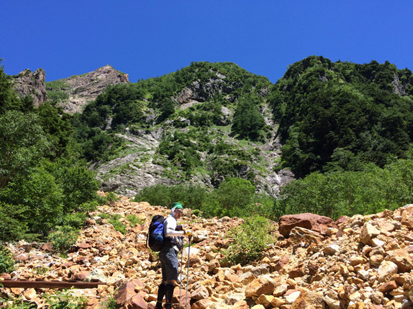 林道を終えてガレ場へ。まだまだ槍ヶ岳は見えない。