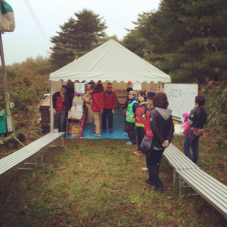 明け方近くになり、駐車場も一段落。エイドに戻っていたら、「渋井さん!」という声が。振り返ってみると5月の蚊取り線香塾練習会でケガをしてしまった大野さん!