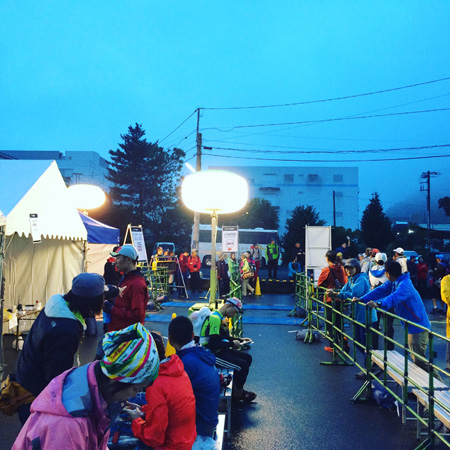 余談だけど、河口湖から二十曲峠へ車で送っていただいた方はUTMF/STYの全体地図や高低図などをデザインしているデザイナーさんだった。ご自身もトレイルを走るということで、ぼくも含めてトレイルランニングが好きな人がUTMF/STYには多く関わっている。