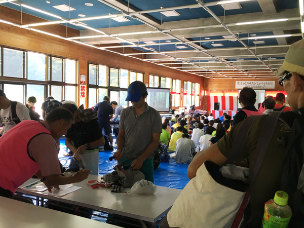 スタート会場で受付を済ませる。必携品の中から数点チェックがあった。わりと必携品は細かく規定されていて、すべて今秋発売予定のMMA Running Back-pack “DUSTY”には収納可能(最初の画像)。なかなかの収納力で、ロングレースからショートまで対応する汎用性高いザックです。よろしくお願いいたします。