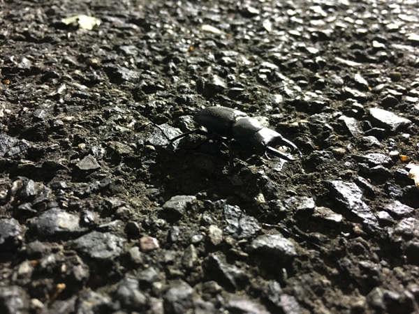 A5から回収バスでフィニッシュ地点の川場村役場へ戻り、そこから車が停めてある川場村スキー場へ。待っている間、クワガタムシが足元に。自然のクワガタムシを何十年ぶりに見ただろう。