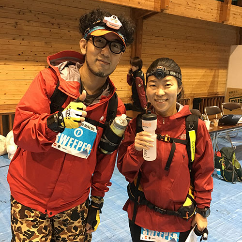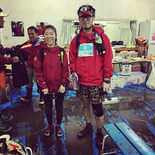 数人の最終ランナーが4時間ほどかけてやっとエイドに到着。苦しい体調、厳しいコンディションの中で前進し続けたランナーに心から拍手を贈りたい。本当におつかれさまでした。また山の中で長い時間誘導をしていたスタッフさんの頑張りにもあたまが下がります。