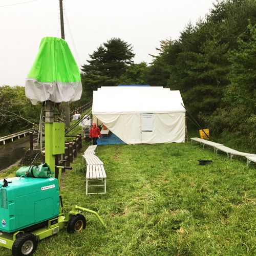 9月24日、スイーパー業務を終えた翌日。UTMFがなくなったことで予定より遅い時間に二十曲峠に到着。大雨の中、エイドの準備を進める。