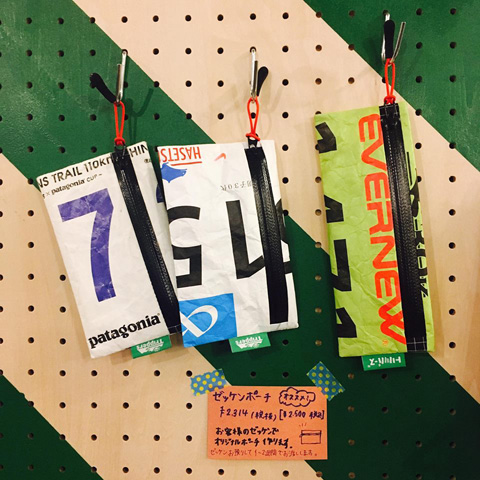 トレイル系ブランドが多く集まるTOADですが、4月にオープンしたばかりのTrippesさんのブログを見てぶっ飛びました。レースゼッケンのポーチ。これはスゴい。