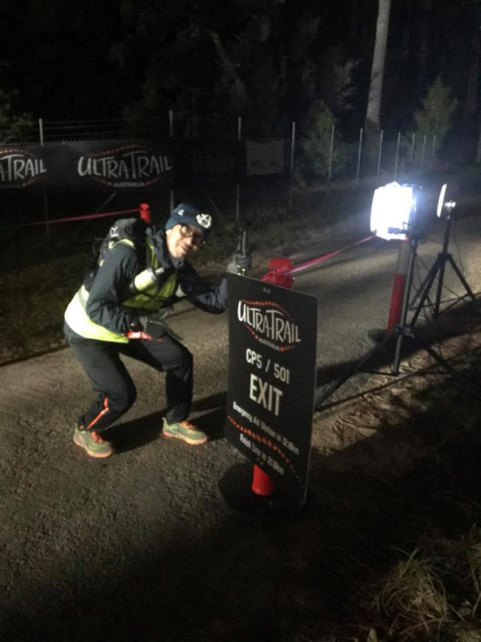 意を決してCP5を出る時にスティーブンが写真を撮ってくれた。「何時頃フィニッシュする?」と聞かれたので「10時」と答える。本当はもう少し早くフィニッシュできると思っていたのだが。