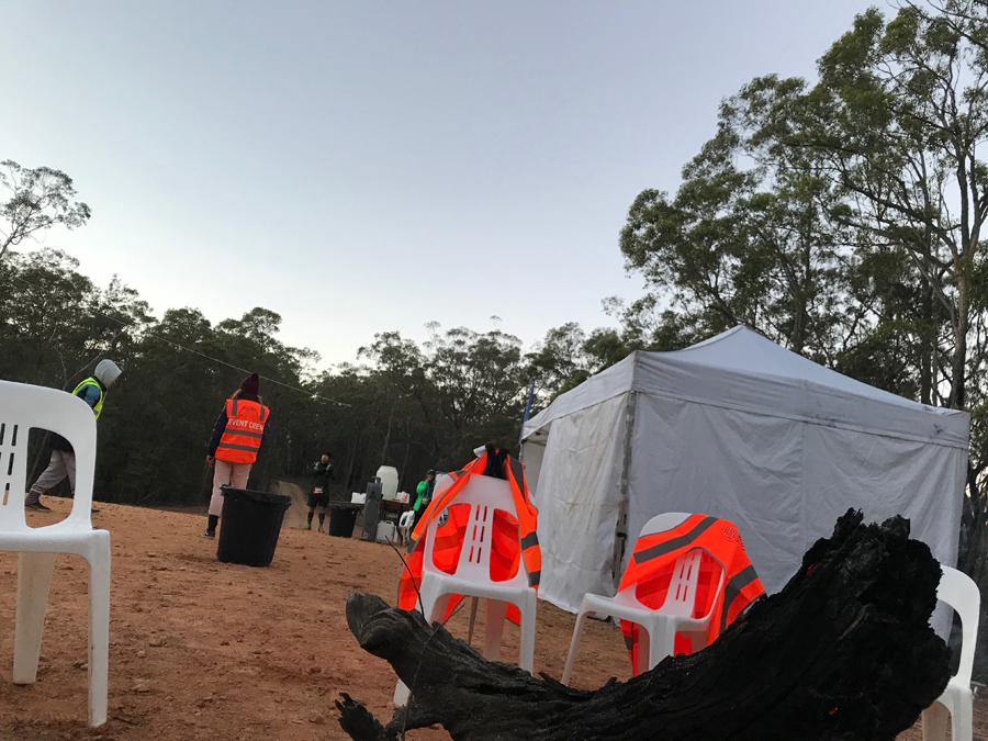 また前半と異なり、後半のコースはしっかりとしたトレイルも多く、疲労が増す。69.4k地点のWater Pointについたのが23:48。予定だとスルーだったが、きちんと休憩することにした。