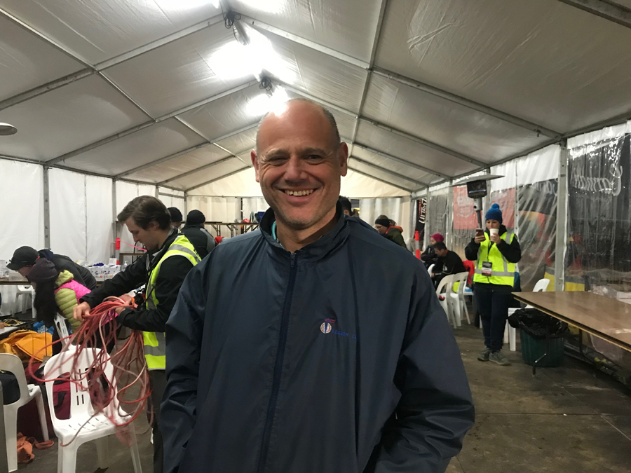 椅子に座り、ブランケットにくるまって休憩する。ぼくは順位的にはかなり後ろのほうでエイドも混み合う感じではないので、スタッフさんたちも積極的に声をかけてくれる。「暖かい飲み物はいる?」「ブランケットかけようか?」「暖かいストーブの近くに行きなさい」(本当は全部英語)、もうVIP待遇である。遅いなりによいこともある。