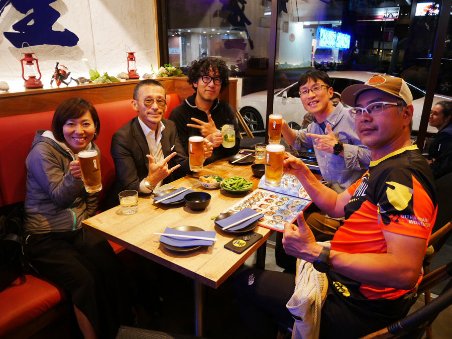 レース翌日はシドニーで打ち上げ。今回のメンバーはチームでも練習仲間でもないけど、旅は道連れ世は情け、みんなのおかげで今回も楽しいトレイルトリップとなった。