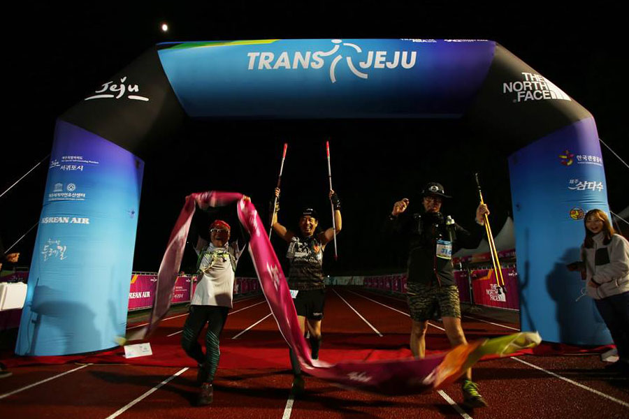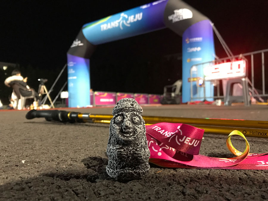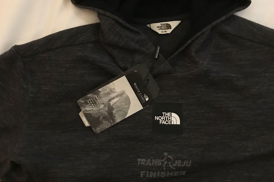 完走賞は済州島にある石像「トルハルバン(石の爺さん)」を模したメダル。これはかわいい!さらにフィニッシャーTシャツではなく、THE NORTH FACE製のフィニッシャーパーカ。普段も着れるデザインで、日本と運営会社が異なるので、意外にレアかも。