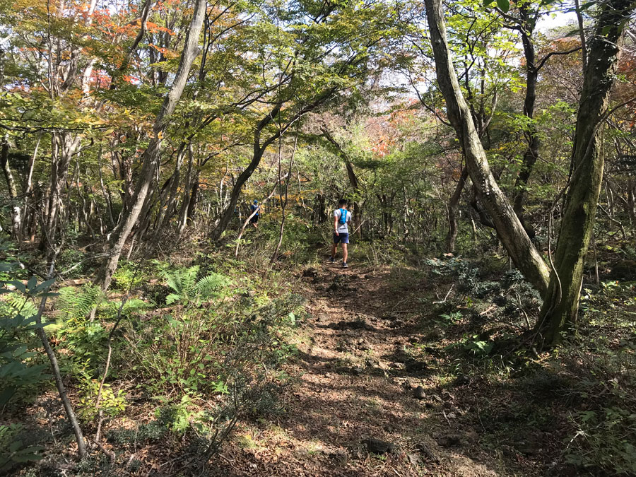 ここは迷いそうだと思っていたら、下から登ってくる集団が。やっぱりロストしたランナーがいたのだが、そのうちのひとりがなんとソトアソ菊川さん!地元ランナー含めて、9名ほどでロストしてしまったとのこと。これもご縁なので、最後は一緒に進むことに。