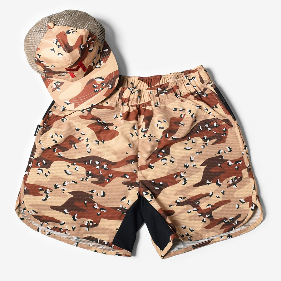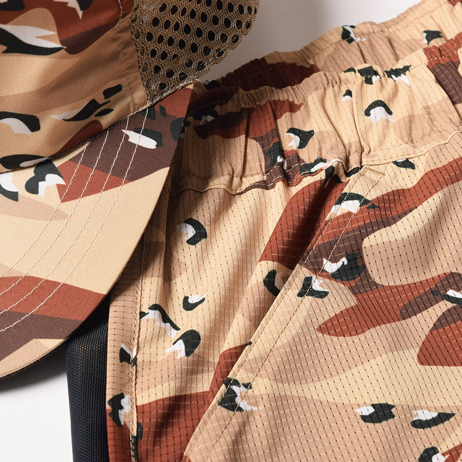 ちなみに同じ柄でもMMA Air Light Run PantsとMesh Capではは素材を変えています。同じ素材にプリントしたほうが合理的だけど、アイテムによってベストの素材を選びたい。