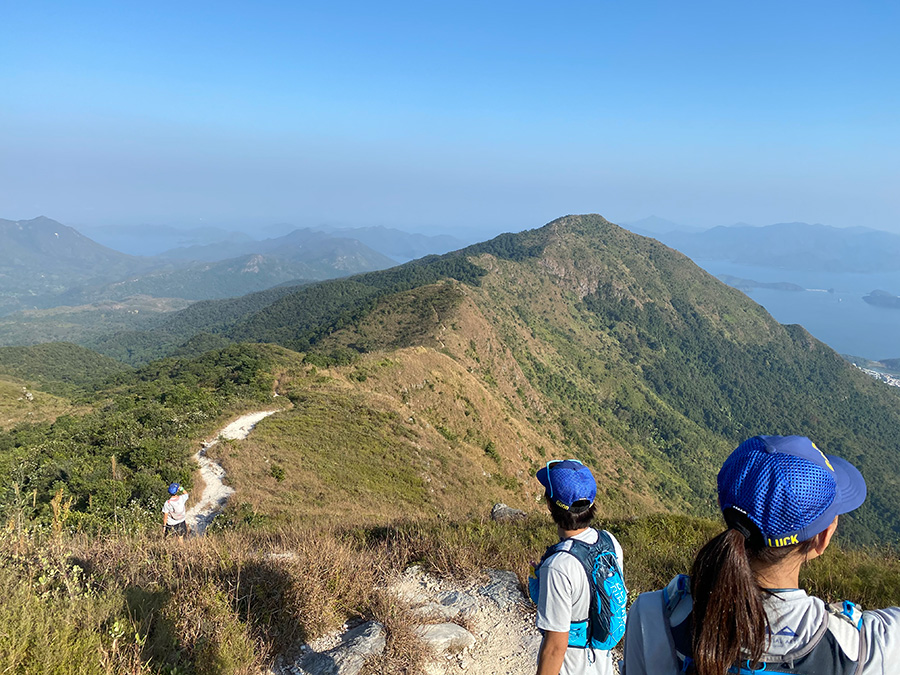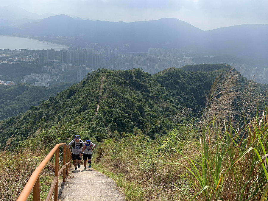 翌日はウィルソントレイルに。香港は階段地獄と言われるが(?)、なかなか堪える階段を登り切ると、アルプスのような雄大なトレイルと絶景が待っていた。この素晴らしい景色と気持ちのよい稜線が都心から一時間!