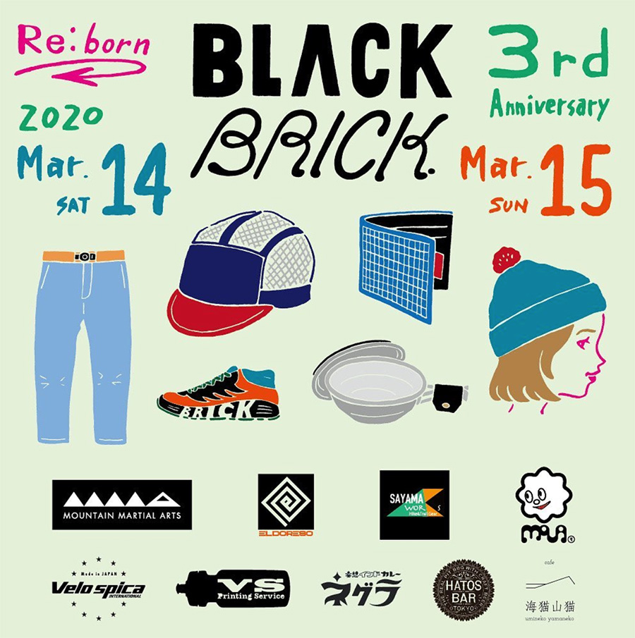 BLBR Camo各アイテムはBLACK BRICKさんで3月14日から限定発売。イベントに合わせてTMRCでは完売したDenim Run Pants 3inchも発売されるそうです。週末は(マスクして手洗いうがいを忘れずに)吉祥寺にGO!