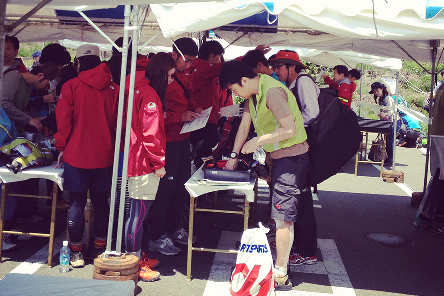 STYも前日受付が可能なので、ぼくも受付を済ませる。受付後には必携装備品チェックがあり、スタッフにひとつづつ見せて確認。他のレースよりも厳格だが、後々その重要さを実感することになる。