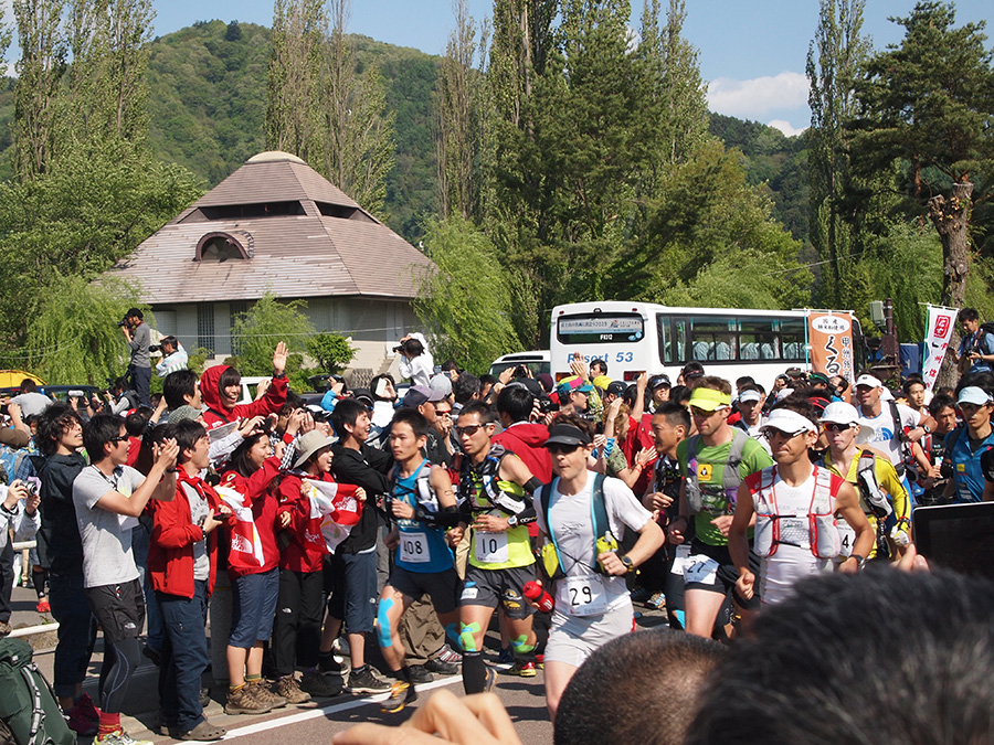 18日15時00分。出場するランナーたちの緊張感と、国際レースの華やかさが混在する雰囲気の中で、UTMFがスタート!