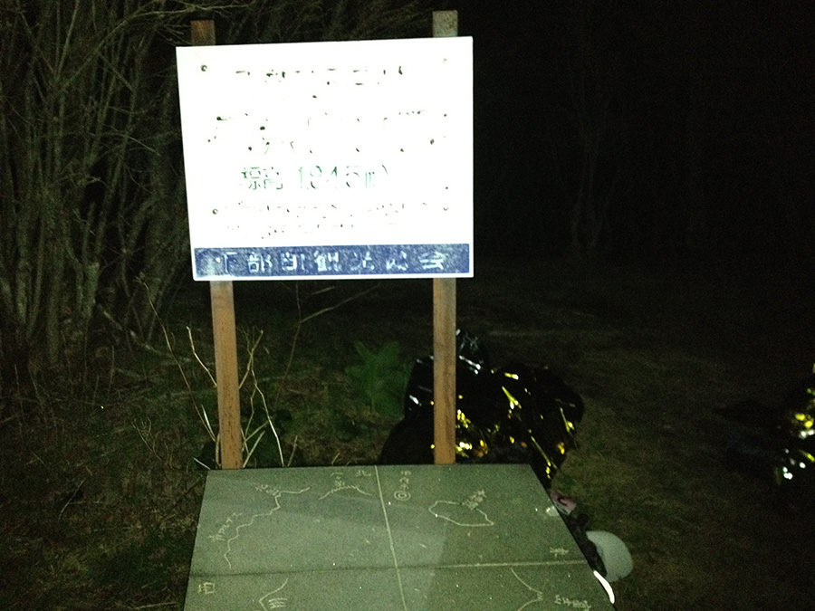 日付は変わり、温度は5度程度しかないかもしれない。そんな状況で、毛無山頂上では多くのランナーがサバイバルシートに包まって寝ている。ある意味、すさまじい光景。まるで戦場のようである。