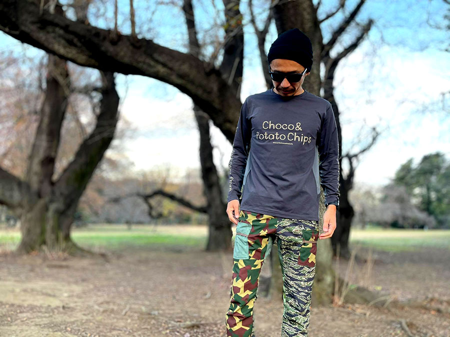 トレイルランニング、ランニング、ハイクでもボーダーで楽しみたい。機能素材に「ボーダーの服」を全面転写プリントしたMMAの定番プロダクト。