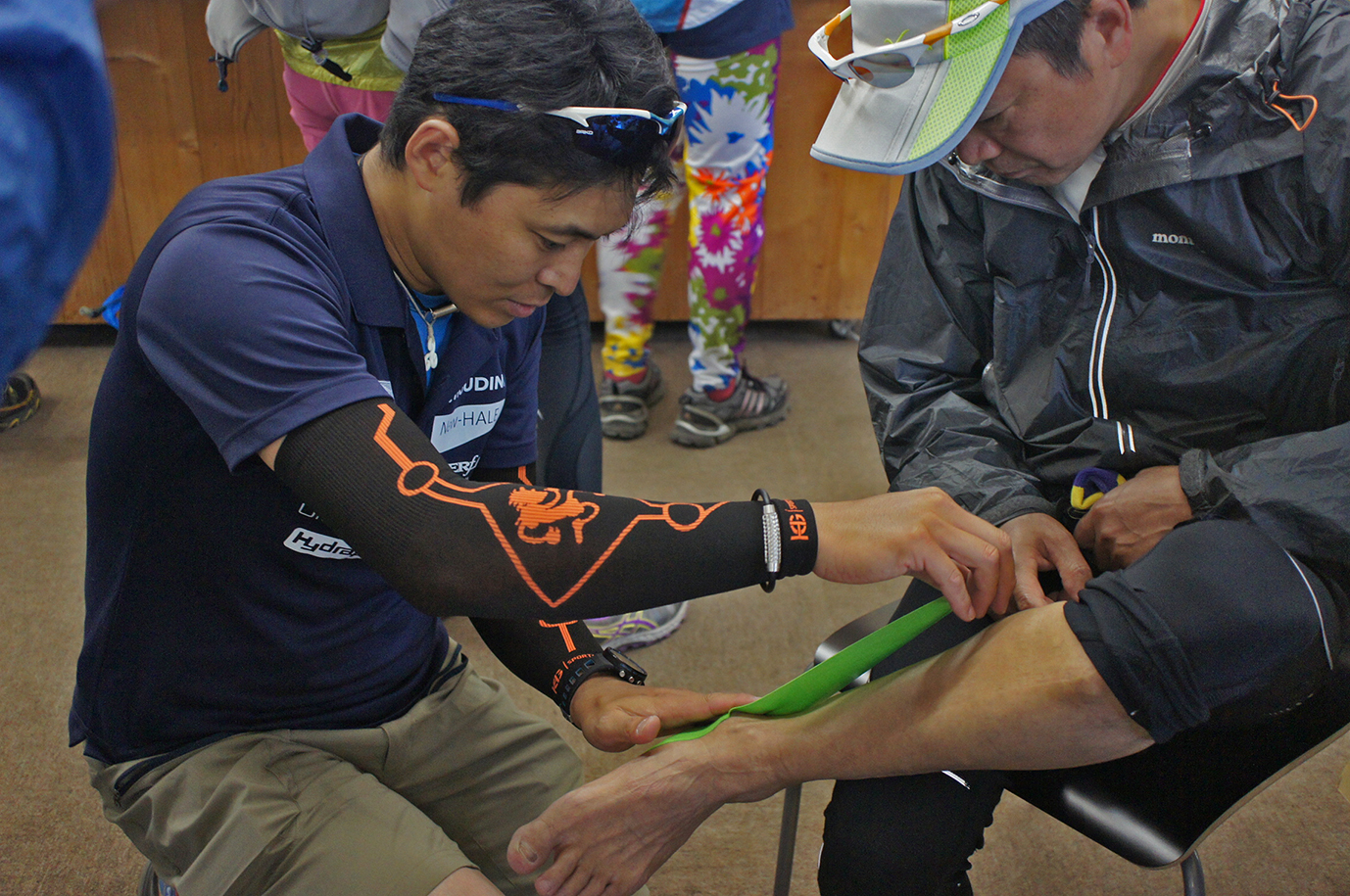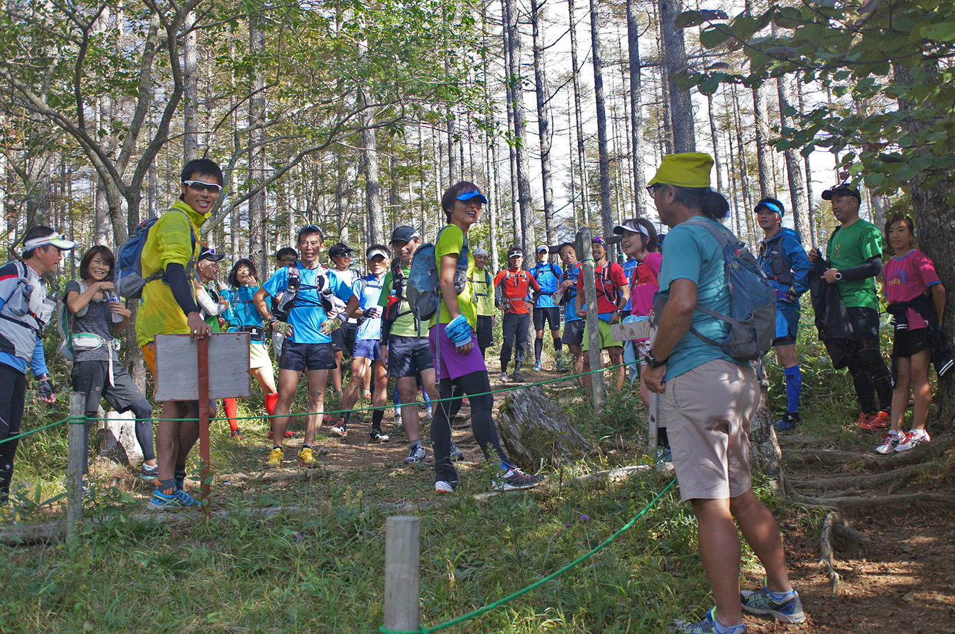 午前中はスキー場のゲレンデ周辺でのトレイルや林道を走り、午後からは入笠山の山頂を目指しながらレクチャーを交えルートを進みました。途中、小山田さんによるトレラン装備に関する貴重なアドバイスや、サポート隊長の齋藤通生さんによる補給アドバイス。そして終了後にはVESPA、New-HALE、SUUNTOからのお土産を頂き、ニューハレ芥田さんによるテーピング・ミニ講座が開催されるなど、とても充実した内容。