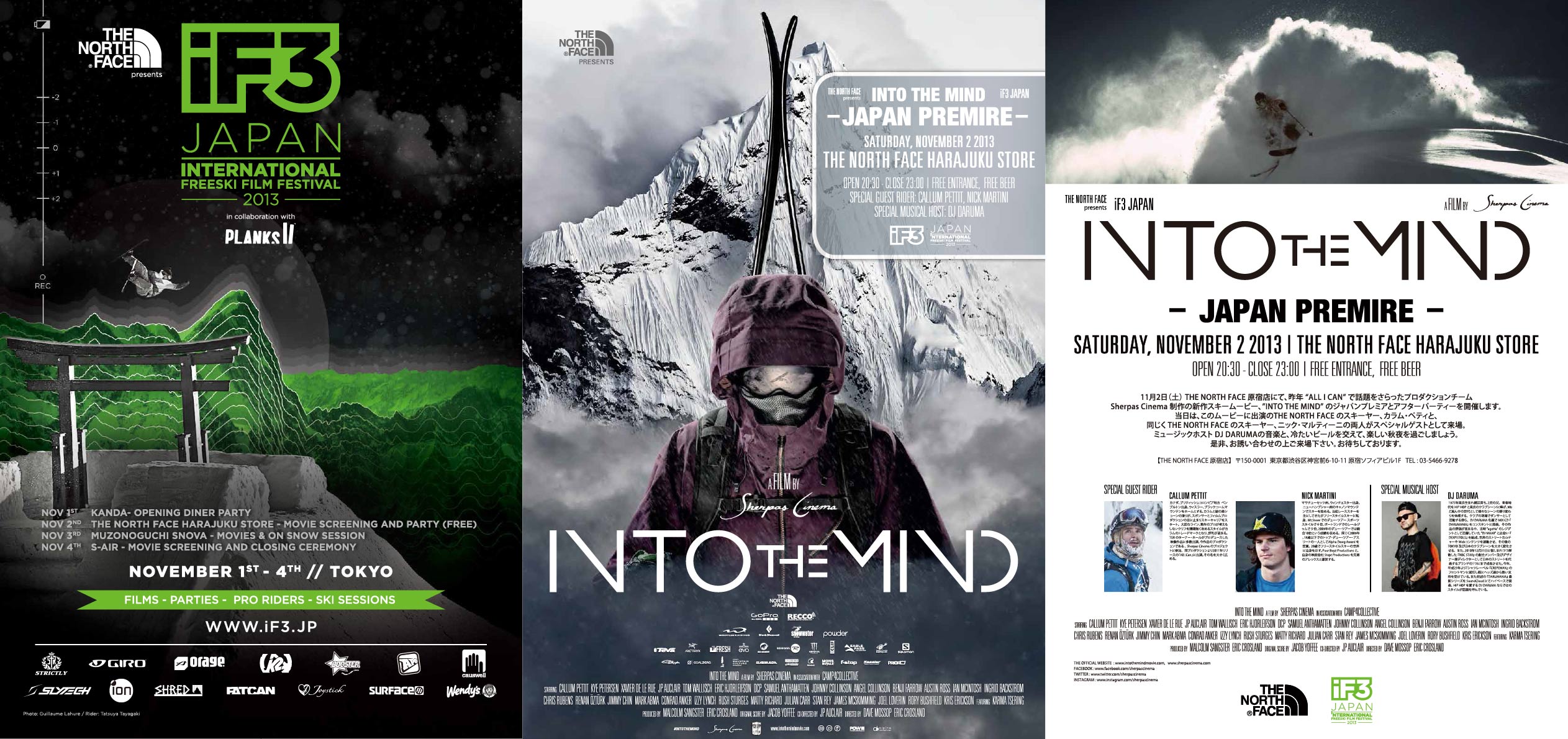 世界最大規模のフリースキーフィルムフェスティバル「iF3 JAPAN FREESKI MOVIE FESTIVAL」の日本開催にともない、映像プロダクションチームSherpas Cinema制作の新作スキームービー『INTO THE MIND』のジャパンプレミアを日本語字幕で観ることができるとのことで、楽しみにしておりました。