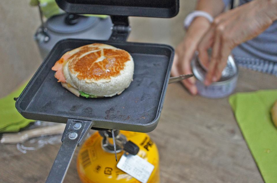 その1つが「ホットサンドメーカー」。シングルバーナーと一緒に持って行けば、トレイルランニング山行の折り返し地点の山頂で、淹れたてのホットコーヒーと、焼きたてのホットサンドのエイドを開設するができるのです。(※火器の取り扱いが可能な場所か否かはご確認ください。)