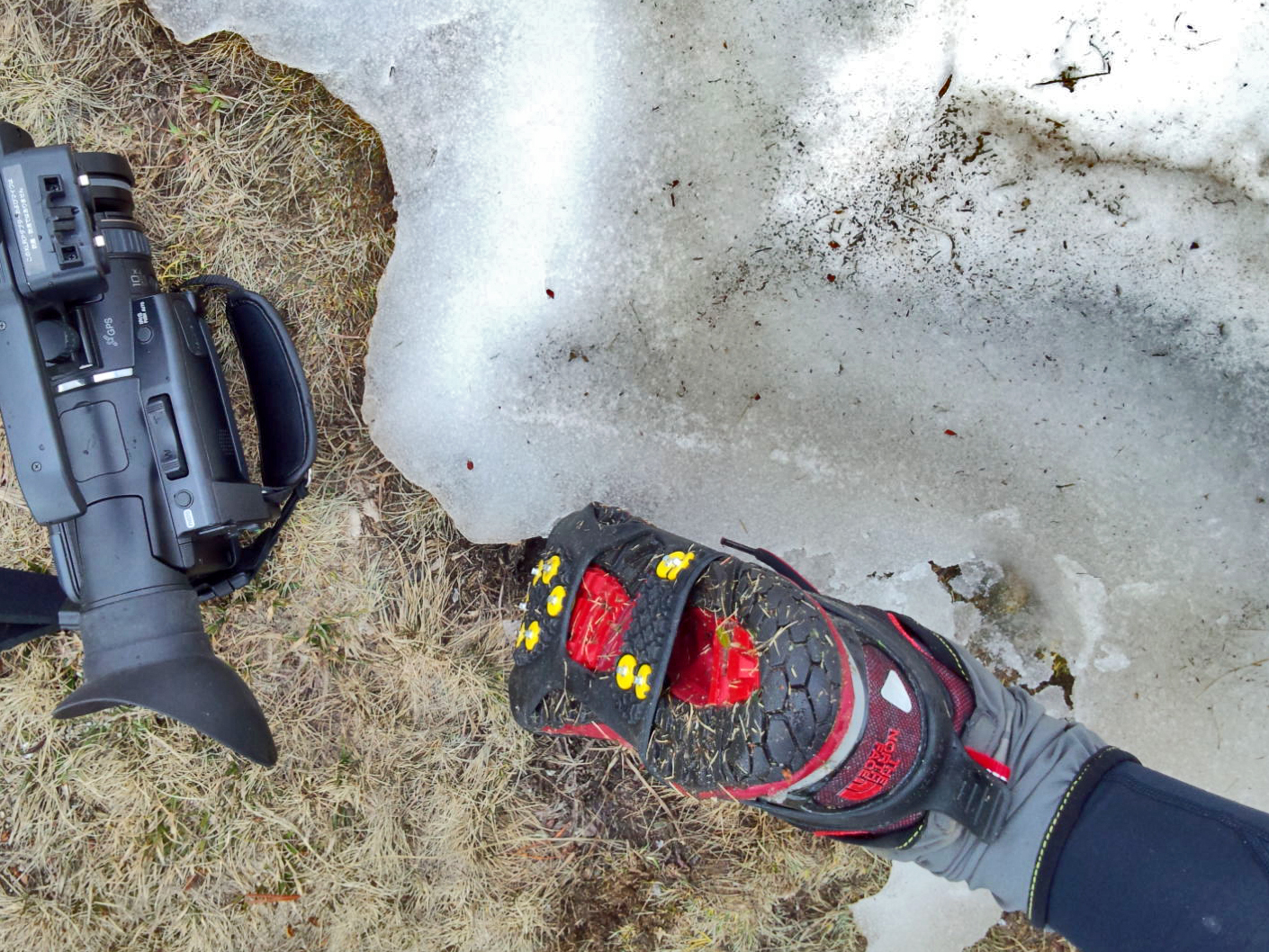 天気がよくても斜面によってはアイスバーンになって雪面が残っている場合がありますので、冬期間にトレイルランニングなどで山に入る際には、ザックの底にでも入れておいて損は無いアイテムではないでしょうか。