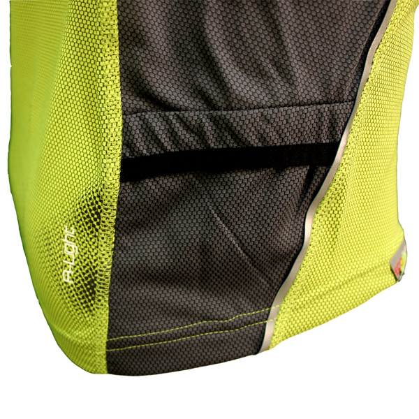 脇下ガゼット部分は吸水速乾機能を持つCOOLMAX®︎ メッシュで切り替え、高負荷や暑い時期のスポーツ時における通気性と快適さを向上。脇のガゼット下部にはポケットを装備し、補給などを入れることができる。