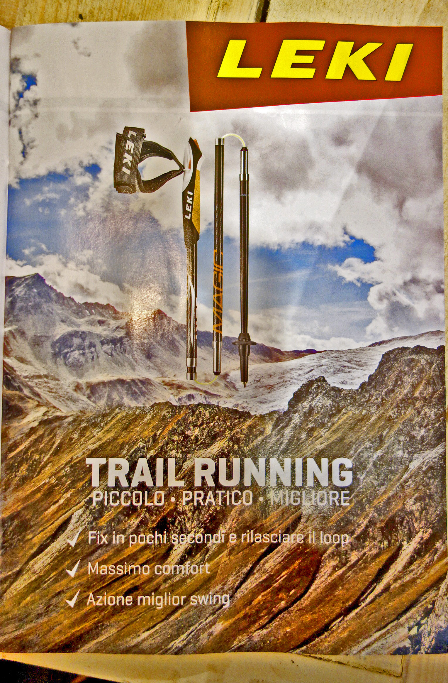 先日、欧州にて配布されていたアウトドア系のフリーマガジンのLEKIの広告(上写真)にも、ハッキリと「TRAIL RUNNING」と記されており、単にコンパクトなノルディッックウォーキングポールではないことを、アピール。