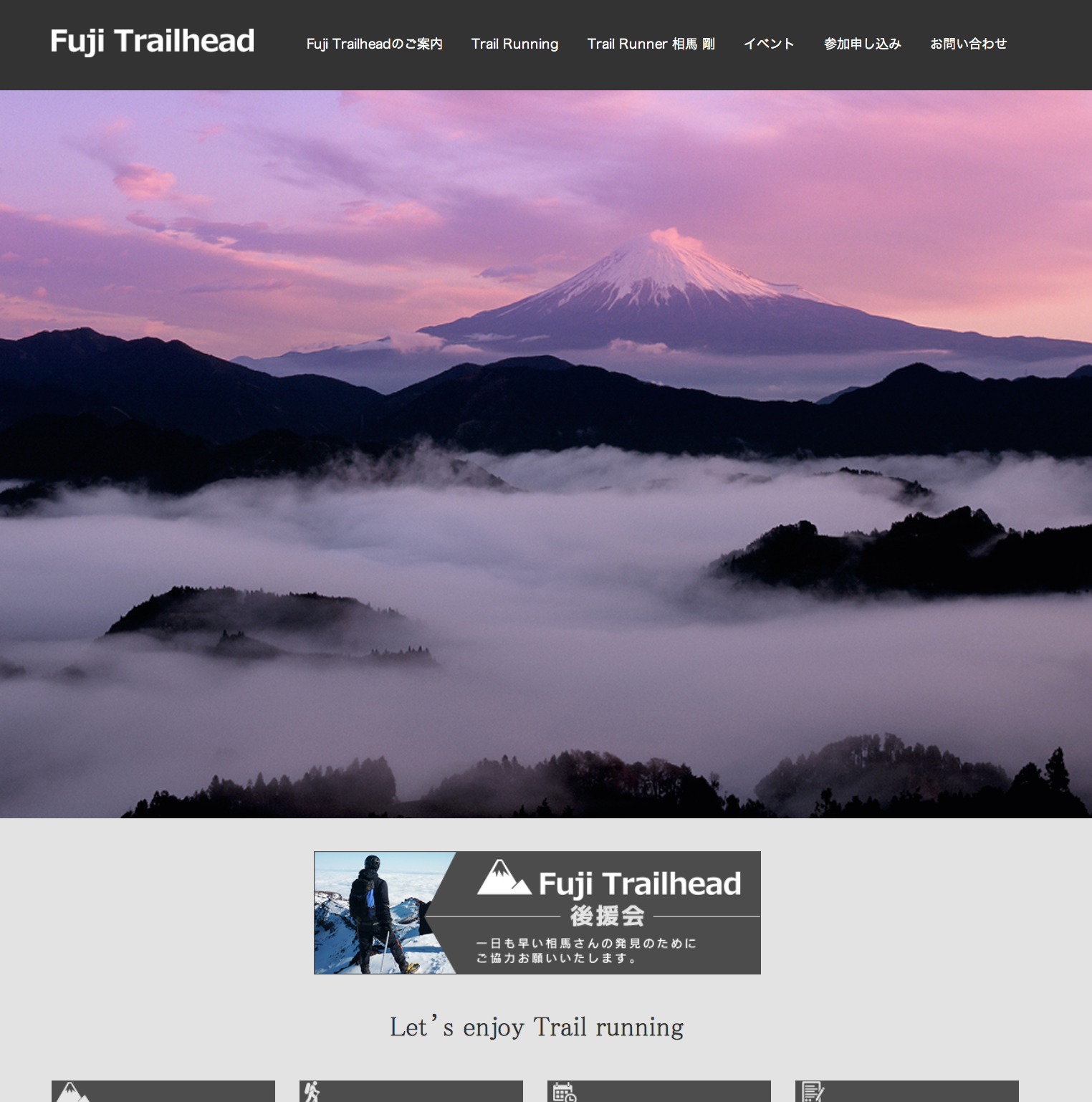 報告会の中でも奥宮さんからご紹介ございました、相馬さんの捜索活動を支援するための募金「Fuji Trailhead 後援会」のWEBサイトはこちら(http://fuji-trailhead.com/ft-bk)となります。まだまだ募金の目標額には達しておらず引き続き受け付けていらっしゃるということです。