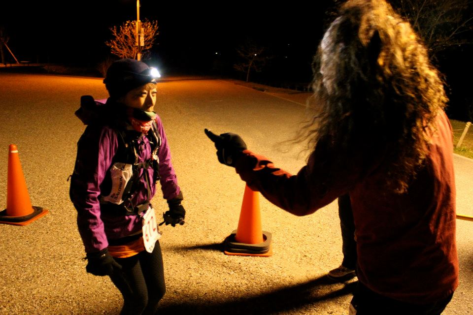 ・さぁここからが100マイルの本番です。しばらくはロード。全部走りたいところだが、疲れのせいか走ったり歩いたり。そして林道登りへ。途中から日が暮れライトをつける。ほぼ寝ずの二晩目突入ということもあり、ここで幻覚が。転がってる石が大小関わらず骸骨に見える。周りに人もおらずちょっと怖い…。しかし去年の経験でこれは幻覚だとなんとなくわかっている。骸骨に囲まれた林道を仕方なく行く。