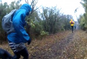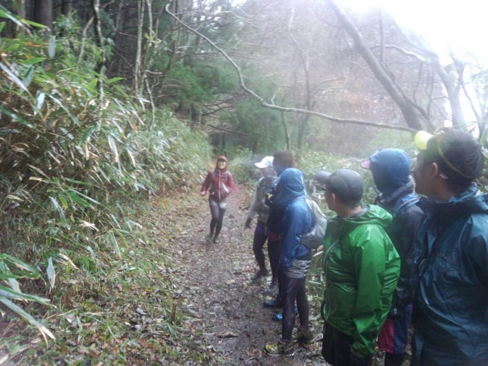 と聞かされながら、雨で何も見えない真っ白な中をひたすら登る、登る。何よりも皆が口を揃えて言っていたのは、トレランは上りはキツイけど登ったぶん、下りがめちゃくちゃ気持ちいい、ということ。登ったぶんのご褒美的な感覚。確かに。そして驚いたのは、その下るスピードと走り方。とにかく皆軽快に猿のように駆け下りていく。つま先でリズムを取りながらどんどん降りていく。教わった下りのコツは、上半身でバランスを取りながら、腹筋に力を入れて腰は安定させたまま足を巧みに動かすのだそう。(スラックラインと同じ!)最初は走り方がわからなくて、木や岩がある足場で坂を駆け下りるなんてできなくて恐る恐る足を運んでいたのですが、コツを掴めば徐々に思い切ってスピードにのせて走ることができました。