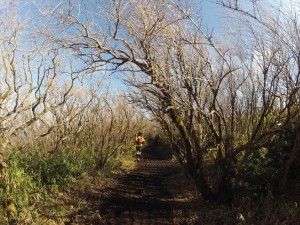 さて、くだってはタイツを引き上げ、くだっては上げを繰り返しつつのこり30分ほどのところで急に足が重たくなり、足の付け根や膝に違和感がありスピードダウン。さすがに走るのも徐々にキツくなり、休みをこまめに挟んでもらいながら少しずつ進みます。