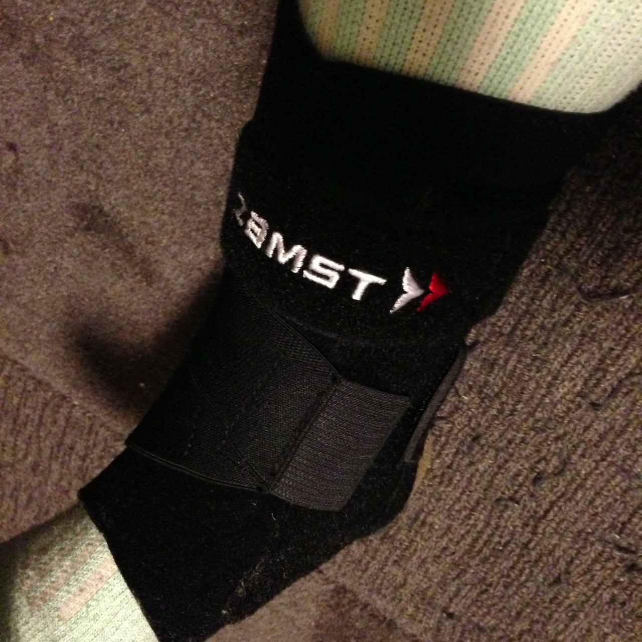 履き心地は良好。プレートが入っているけどガチガチでもなく。というか、これを付けていれば走っていても全然痛くない。基本はA1(¥5,775)というモデルが内反用、さらにその上のA2-DX(¥8,295!)というモデルが内反・外反用だそうですが、バンドとギブスの合間を探していたので左右のブレを固定する目的でA1にしました。