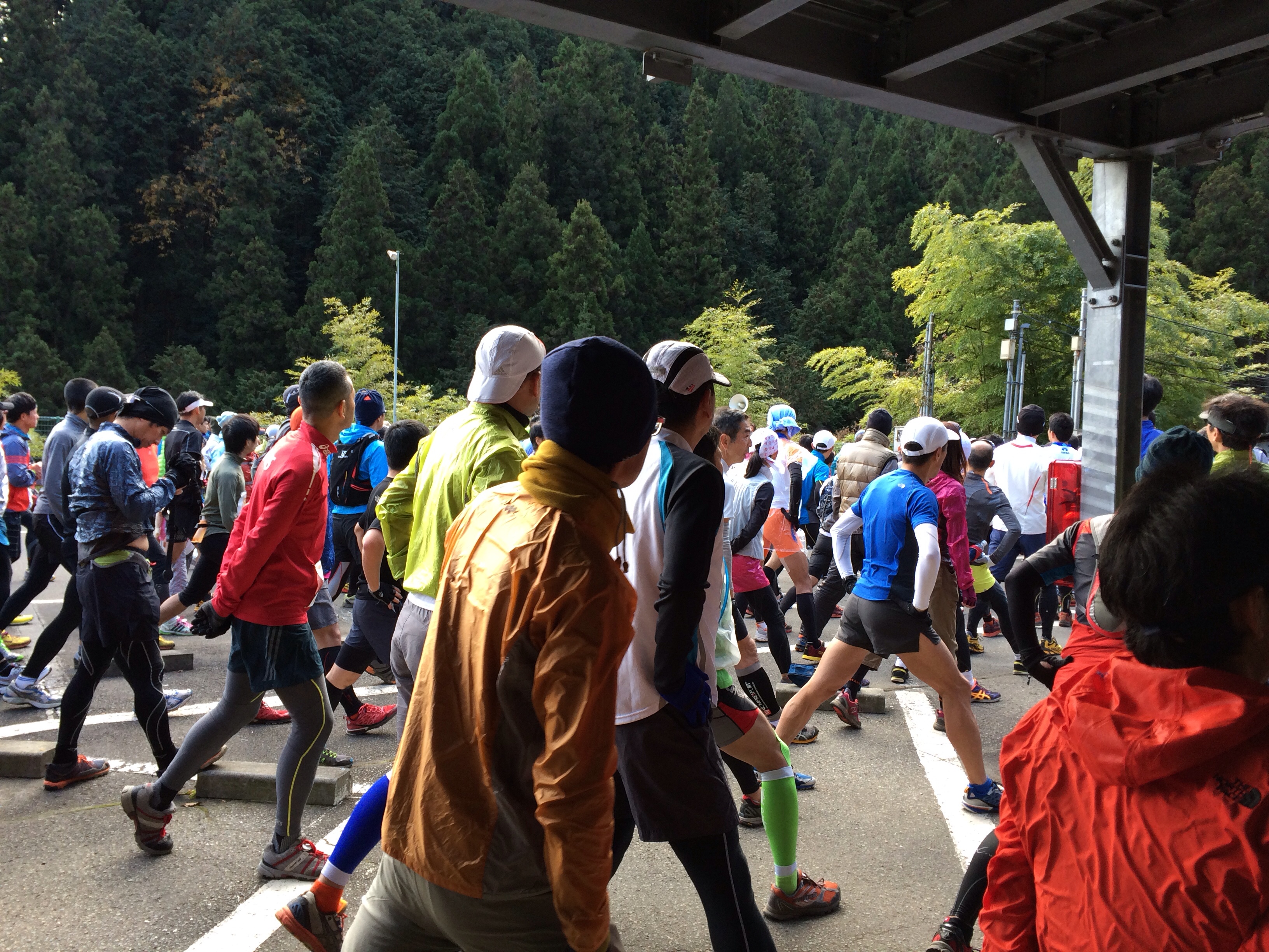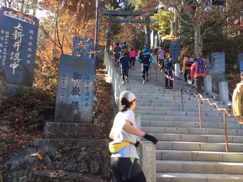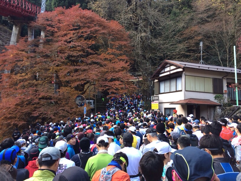 ドンドンという太鼓の音と共にスタートしていきなりのアスファルトの坂道。3kmもあって、これが結構辛い。目標は20分~25分で上がりきるつもりでかなり急いだけど、思った以上の傾斜でやっぱりほとんど走れなくて結局30分かかってしまった。まだまだ登りが走れない・・・(泣)