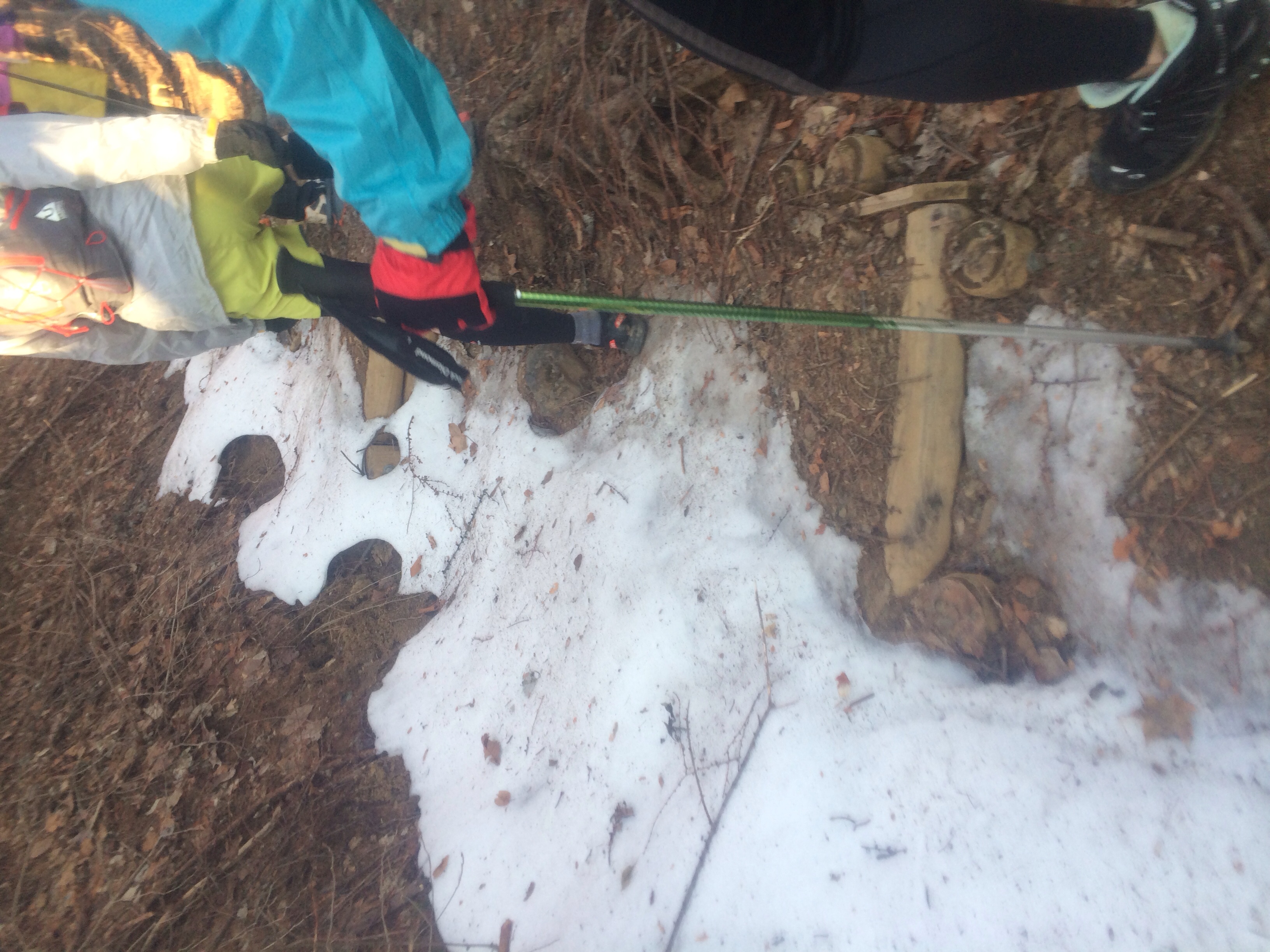 (2)休憩や靴ひもの結び直しなど、ちょっと手袋やビーニーなどを外す時、モノを絶対に地面などに置かないこと。ついついやってしまいがちだけれど、これも(1)同様に風が強かった時に、簡単に飛ばされてしまう。それを聞いて思ったのは、風ももちろんだけれど、エイドなどでうっかりどこかに置いて失くしそうだということ。慌てて探してる暇なんてない。だからと言って手袋なしで継続しては手が凍えちゃう!手袋はカスタムして手首に通せるループをつけておくといいかもしれないですね。
