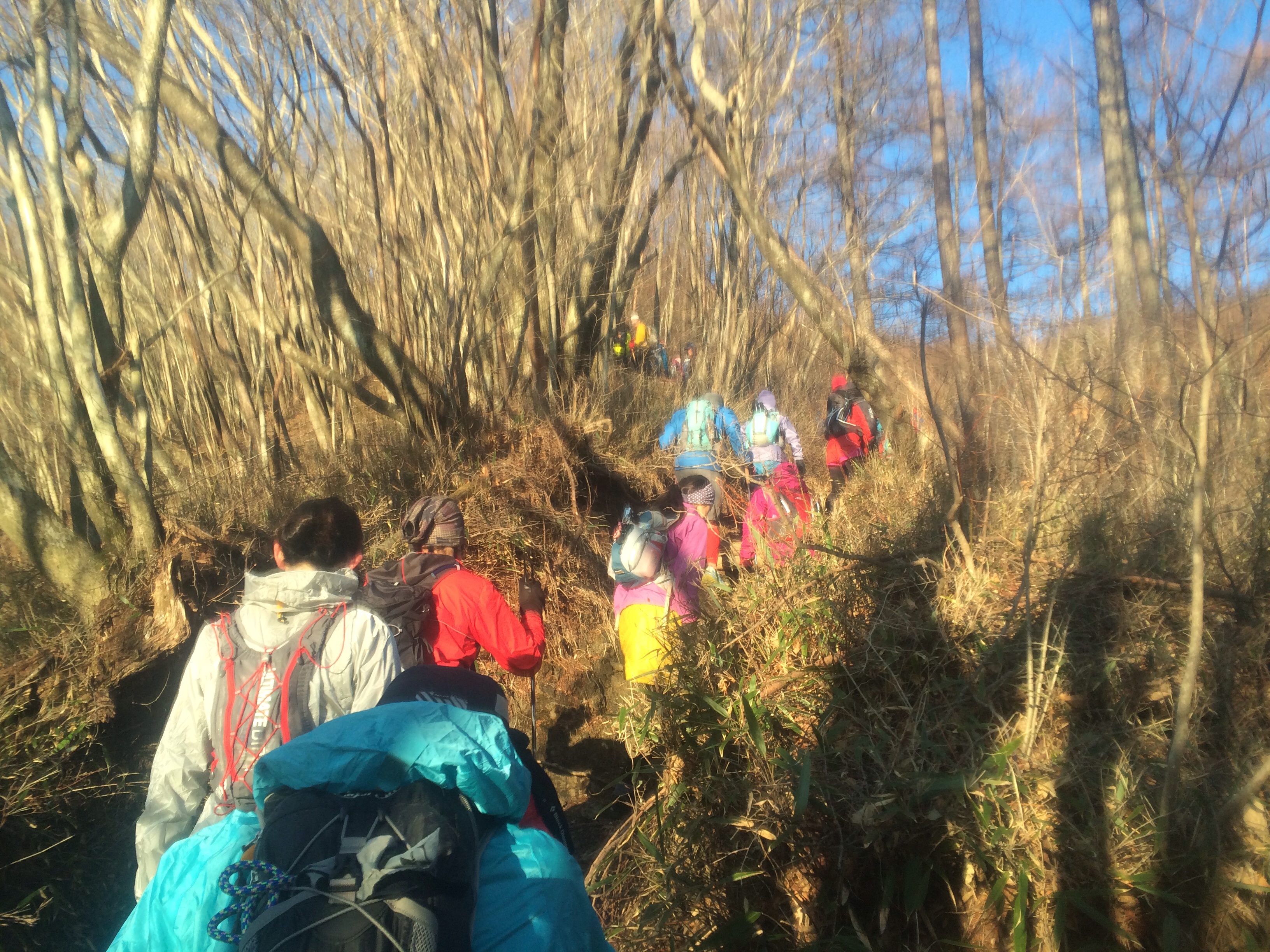 男女年齢様々。事前に回答しているおおよそのタイムからA~Dにチーム分け。基本的には全員で行動するけれど、各チームにリーダーを設けて点呼を取ったり安全管理をするという目的。大人数だけれど、山中トラブルなくとてもスムーズな進行でした。