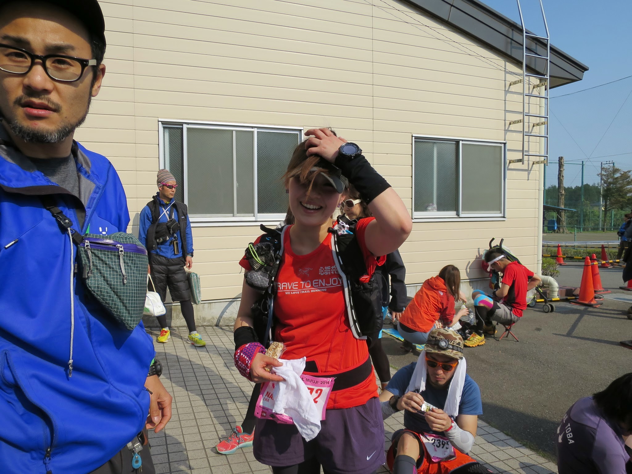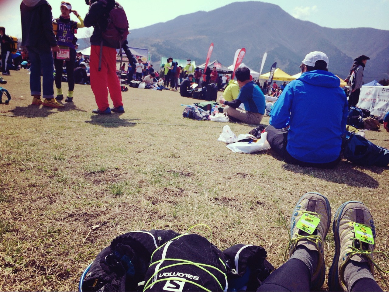 ちょっとのんびりしてから、選手受付と必携品チェック。そこからじっくりと時間があり、芝生に足を投げ出して、ぽかぽか太陽にあたりながら、ちょびちょびと補給しつつみんなと笑いつつリラックスして過ごす。これもまた、よかった。