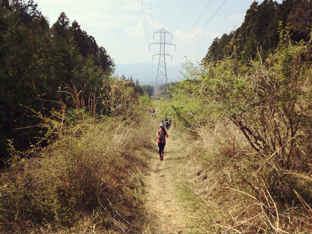 粟倉を出るとさっそく。でた~!うわさの送電線ゾーン!これか!こいつか!と喜んで写真を撮っている場合じゃない。「アップダウンが意外ときついよ」と聞いていたけれどSTYはまだまだ序盤。とにかく走る。ロスした10分巻けるかな~?なんて思いながらも、前後の外国人の方とアイコンタクトや身振り手振りでコミュニケーション取りつつ、西富士中へ。なんか伝わってたかな。