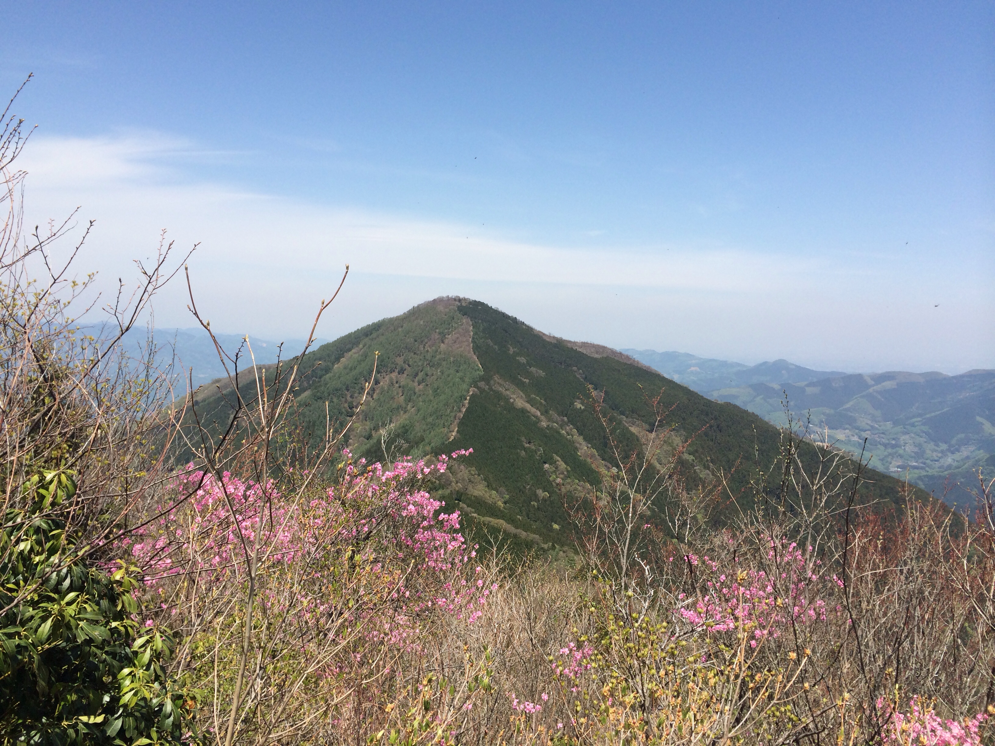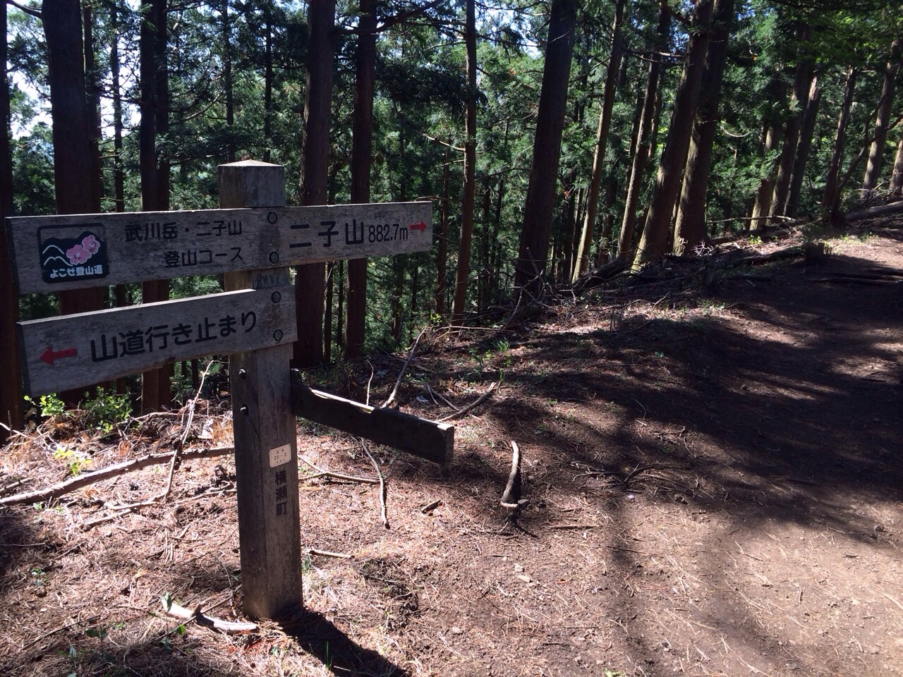 ちょっと広い山頂。ここからも武甲山が見えますが、二子山から見えた山容とはうって変わって緑いっぱいの姿。見る方向が変わって、石灰採掘の無骨な表情が隠れるのです。そして、これから登る急登コースがまっすぐ真ん中に見える。これから行く道が見えるのってワクワクするから大好き。あんな遠くまで行くのか~!と。