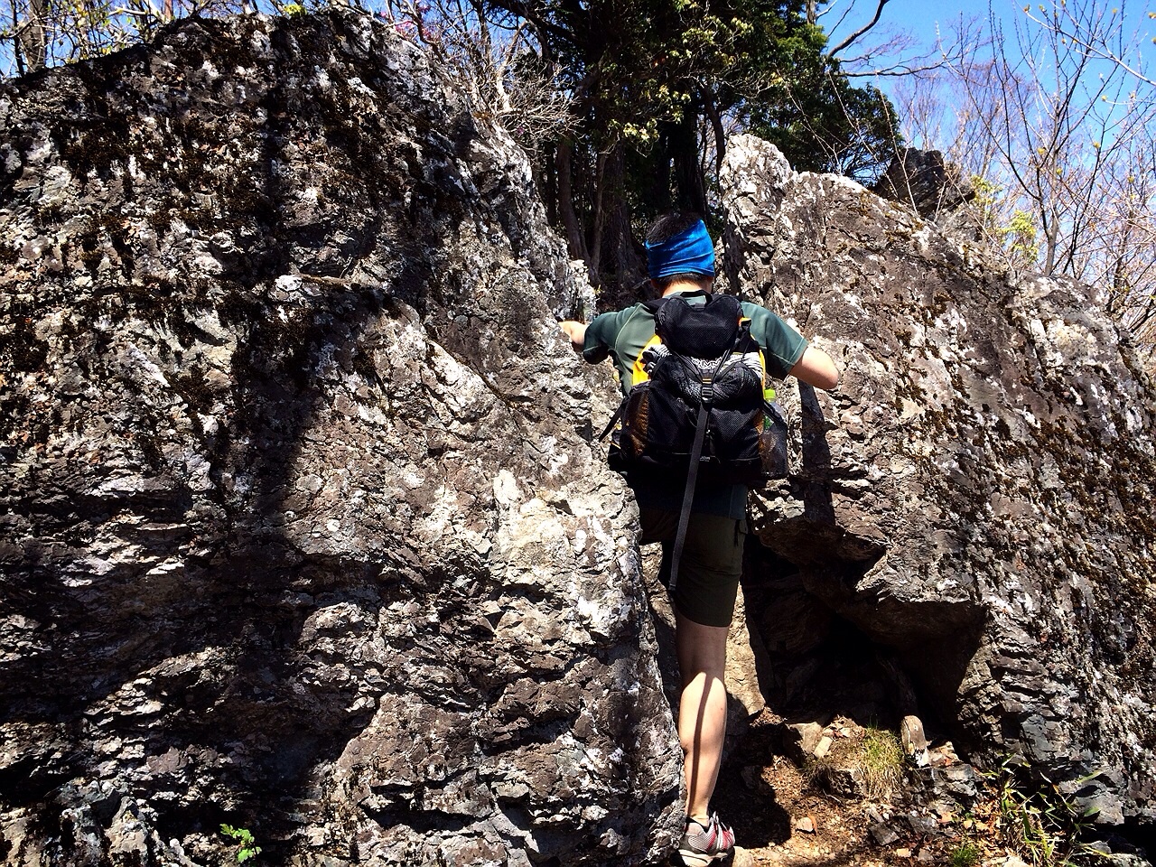 妻坂峠から大持山までは、岩場と上り。一瞬「ん?これどうやって登ろう?」と思う場所もあってなかなかのアスレチック感。
