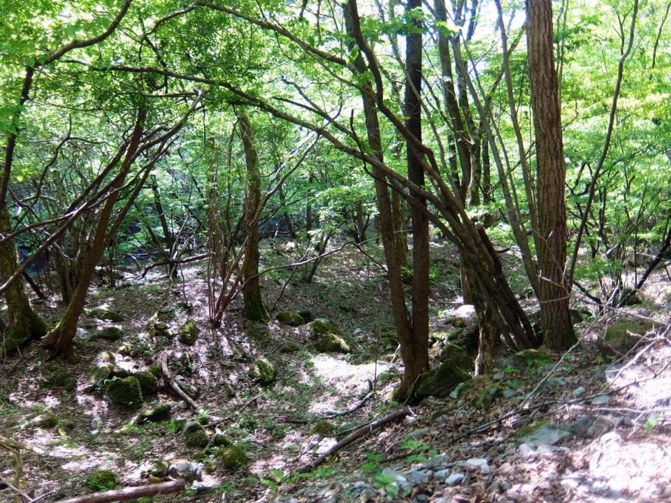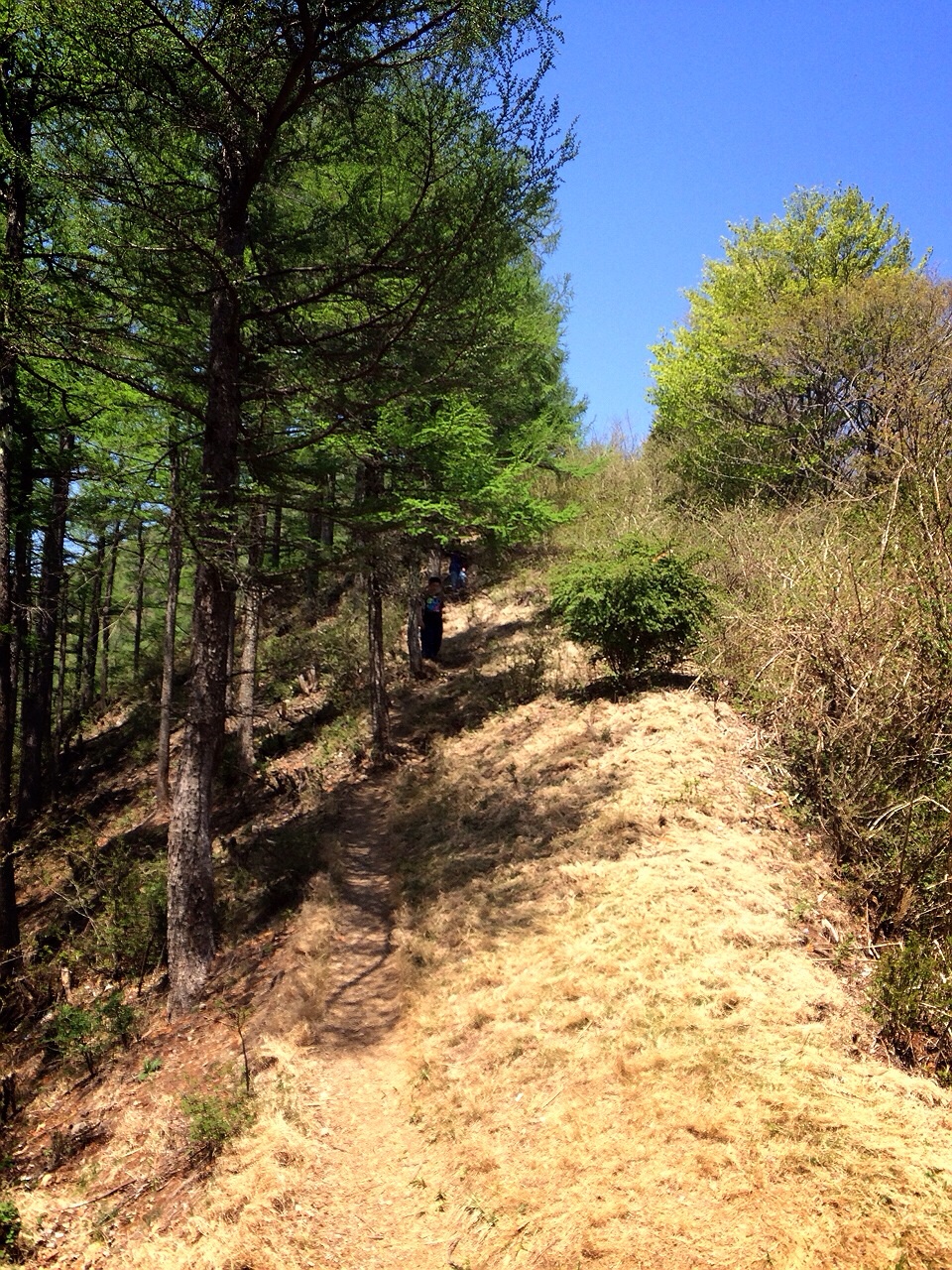 二子山までの取りつきはちょっと頑張って標高300m強のぼります。新緑がまぶしく、心地いい森林。最高にハイキング日和。