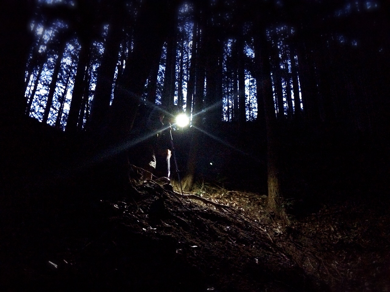 最後1時間弱はヘッドライトを付けてナイトハイク。慎重に。月明かりがキレイ。鳩ノ巣駅手前の熊野神社に出たらトレイルは終了。休憩含め、行動時間約11時間。おつかれさまでした。