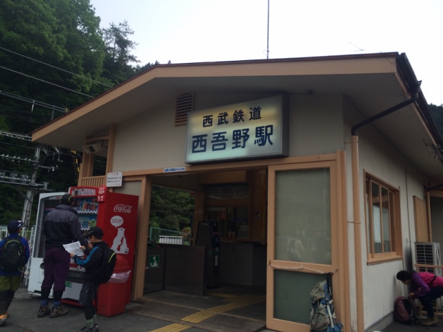スタートは西吾野駅。自販機やトイレなどがあります。さすが、ゴールデンウィーク。いつもはがらがらの西武池袋線(西武秩父線)も人がいっぱい。飯能~正丸あたりまではどの駅も登山客がちらほら。昼から小雨が降るかも予報だったのでレインウエア持参。でもとりあえず朝は降ってないぞ!