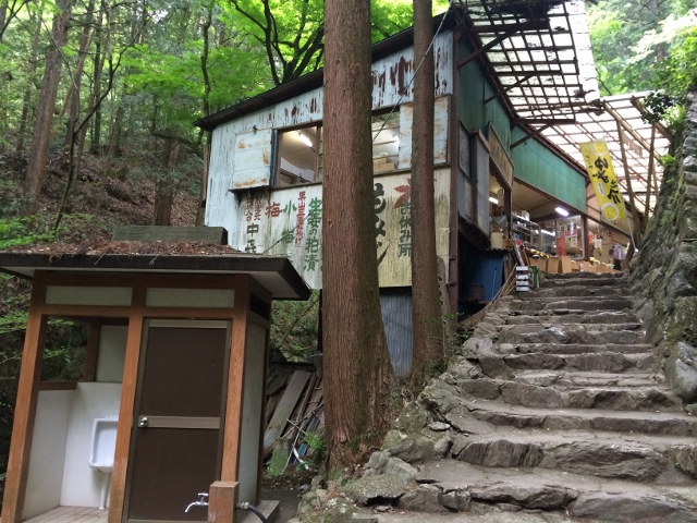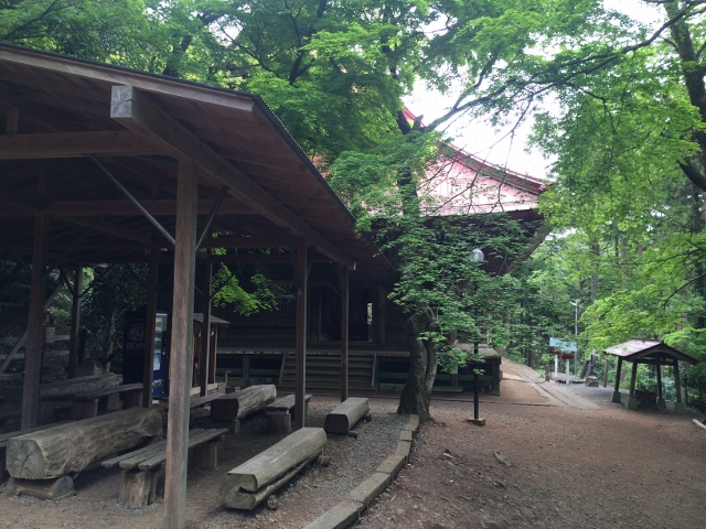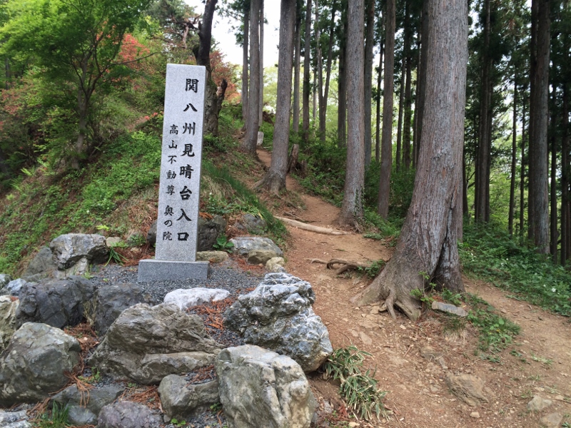 高山不動堂横にはトイレや自動販売機もあってありがたい。次は、不動堂からさらに1キロほど登った奥の院 『関八州見晴台』を目指します。トイレ裏から登山道に入ります。