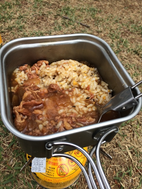 近くのヤマツツジを鑑賞しながら早めのお昼ごはんタイム。レトルトの牛丼に家で握ってきた玄米おにぎりをぶっこむパターン。見栄えはともかく、美味しければいいんでい。関八州見晴らし台の山頂は比較的広くて、暖かくなると人でいっぱいなのに、この日は3組程度。小雨予報だったからかな?