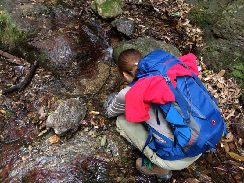 顔振峠でのごはんを終えて、吾野駅へ。1時間ちょっとで着くルートだけれど、またもちょっとわかりにくい。途中で団体さんに会い、最初の分岐で「こちらですよ」と声をかけて以来、駅までずっと少し後ろにいらして、なんだか緊張。もしかしてついてきてるのかな?途中からはほぼ林道で下りれるけれど、私達はそれと並行する沢沿いのやや濡れたトレイルを行きたくて、要所要所でトレイルに入る道を選択していたら、ちょっと離れたところからたぶんついてきてしまったようでちょっと苦戦していたようでした。地図持ってなかったのかなぁ?