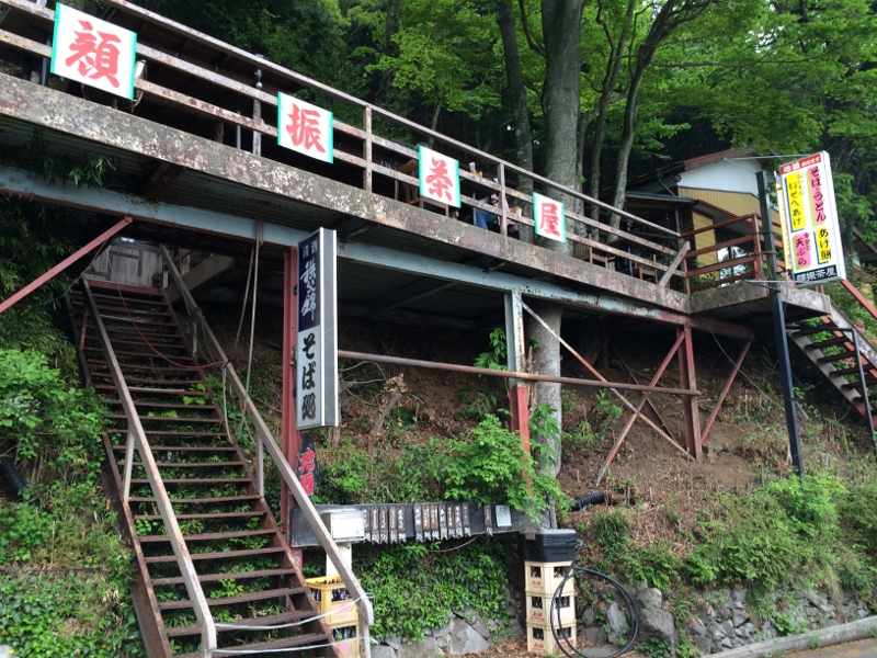 最終ポイント、顔振峠に到着。顔振峠は、近くにカフェ(眺望のよいお店でピザなどが食べられる)、峠には茶屋が3つもあります。車で来れる場所のため、ドライブがてら茶屋にお昼を食べにくる人もいるほど。そのなかで、まだ行ったことのなかった顔振茶屋へ。(結構開いてないことがある)