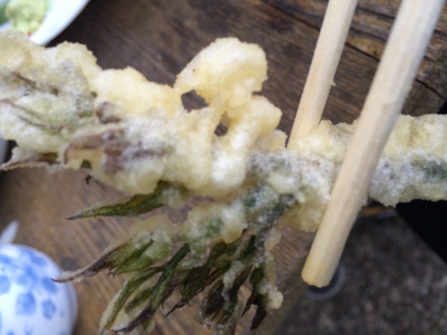山菜の天ぷら。たらの芽はほくほく。なんだかおいもみたい。そのほか、たぶんコゴミ、ウド、そしてスカンポという謎の山菜も。どれも激うまでした。