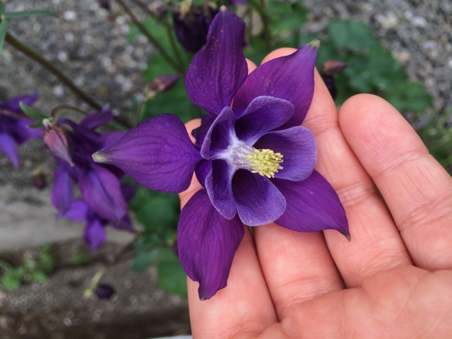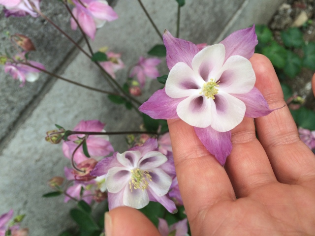 写真のものは、おそらく、セイヨウオダマキかな?お花が二つ重なったような不思議な形がかわいい。吾野駅そばのハイツ?お家?の端に咲いていました。野生というよりは人が植えた様子でした。色んな色があってかわいくて、思わず写真を撮りました。草花に詳しくなったらもっと面白いんだろうな。
