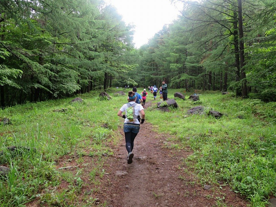 2ndエイドからの八ヶ岳横断歩道10kmは、ほんとにここ10kmかよ?!と思うほど長く、途中でずいぶん怠けてしまいました。どうにもちょっと気持ちがだらけてしまい、絶対に走れるフラットやゆるい登りなのに歩いてしまう。リザルトを見ると、ここで20人近くに抜かれていました。今回の一番の反省です。いままであまり感じたことがない腿前の筋肉の売り切れ再入荷待ち感(笑)と股関節が攣るという異変もあったりと、新たな課題と発見でした。